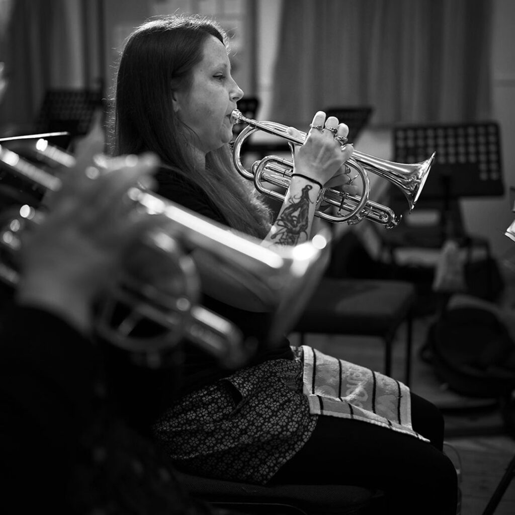 Over the Summer holidays of 2025 Julie, Raven, Sandra, Kath and Cassie led a series of music making sessions for young people across Barrow in Furness. Part of the “Playcations” project the team spent two weeks in various locations around the town. Armed with our plastic instruments we led vibrant have-a-go work shops which saw young people picking up trombones and cornets and forming instant brass bands. This inititive allowed our participants to gain invaluable skills in leading groups of young people in music making. These skills have since proved to be useful in other parts of the project.